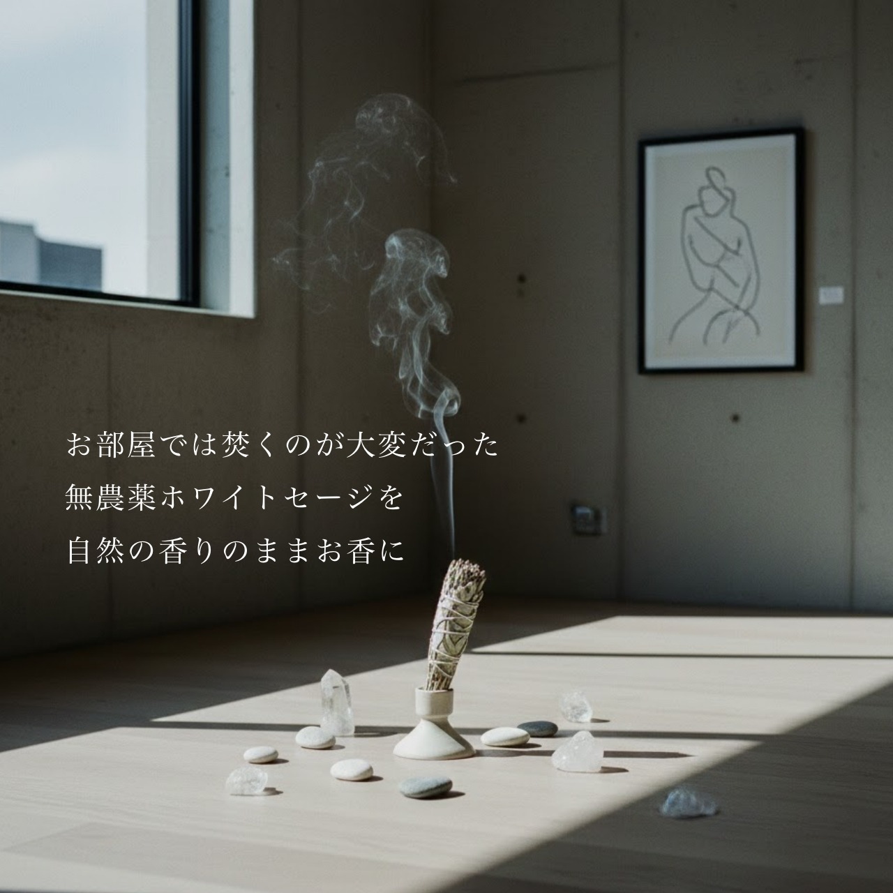 ※中級者〜上級者さま向けのお香です。従来のお香とは印象が大きく違い、乾燥ホワイトセージ独特のダイレクトな野生味のある香りです。お香初心者の方や乾燥ホワイトセージを体験されたことがない方はご注意くださいませ。